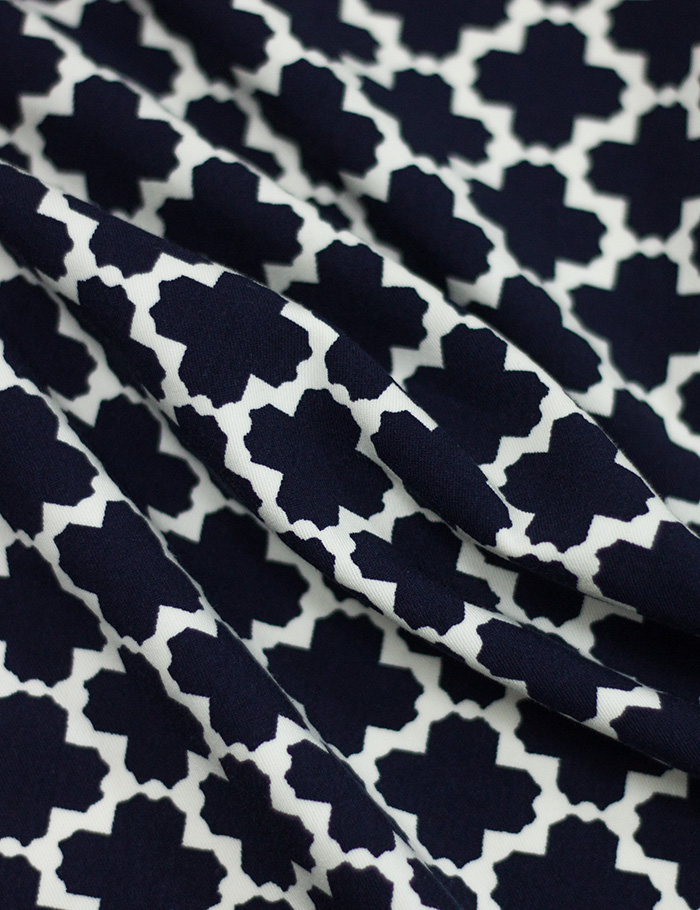 Ткань Джинса стрейч Геометрия, белый+синий