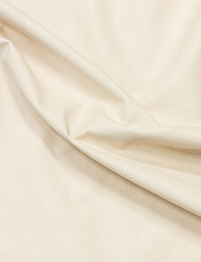 Ткань Эко-Кожа с гипюрным рисунком молочный