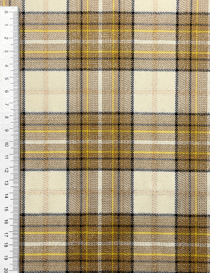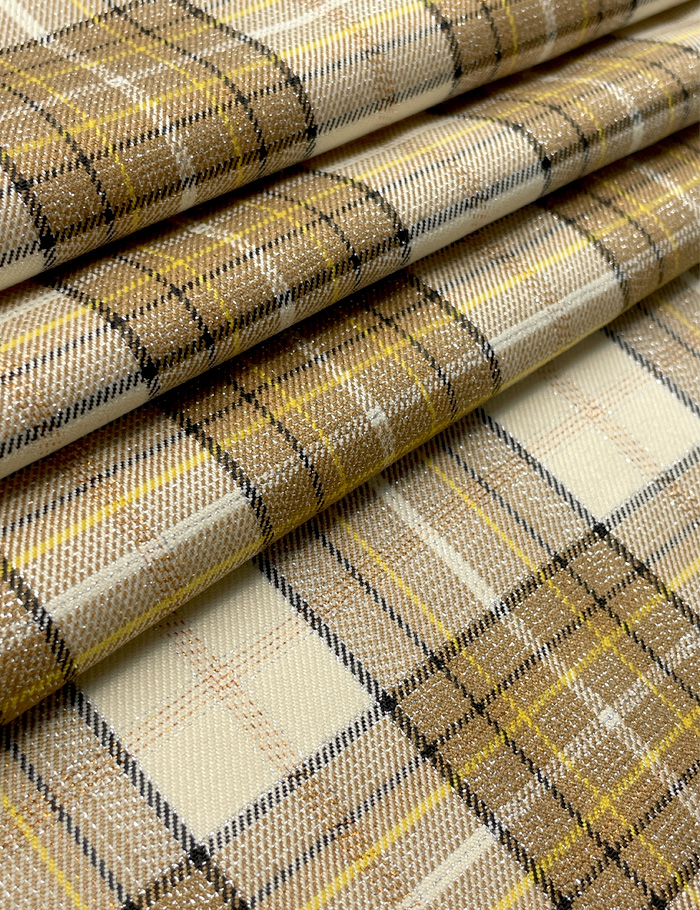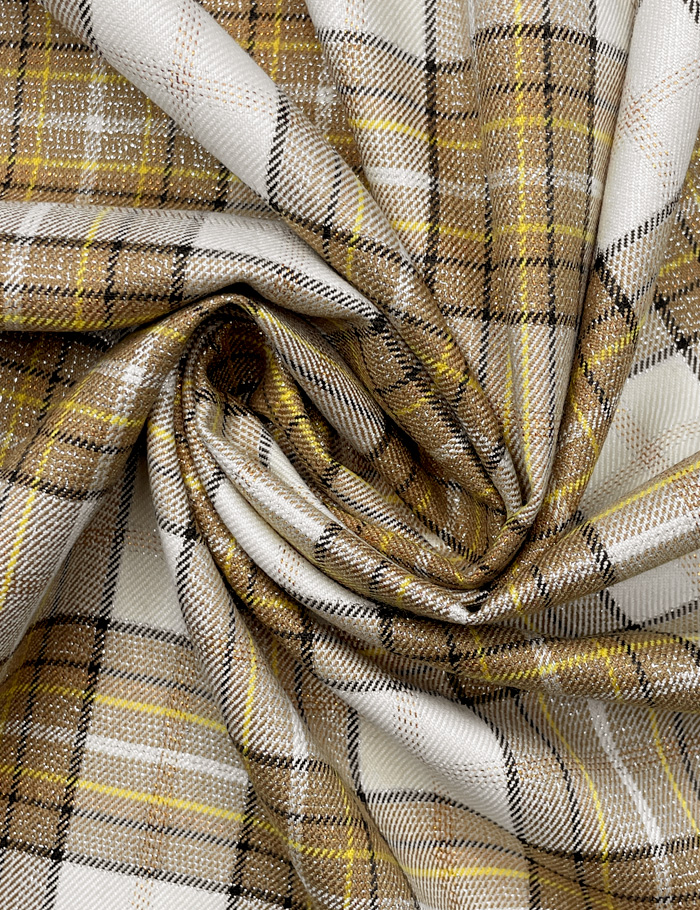 Ткань Костюмная Клетка Оливия, бежевый с люрексом