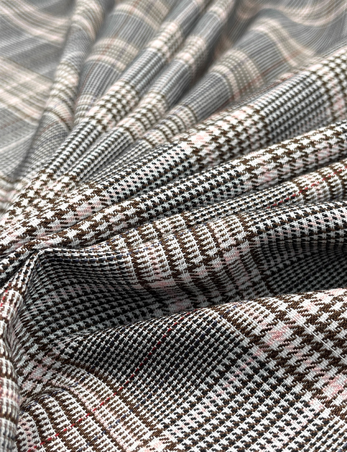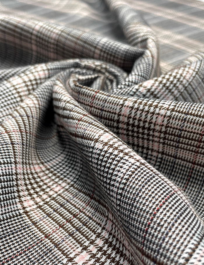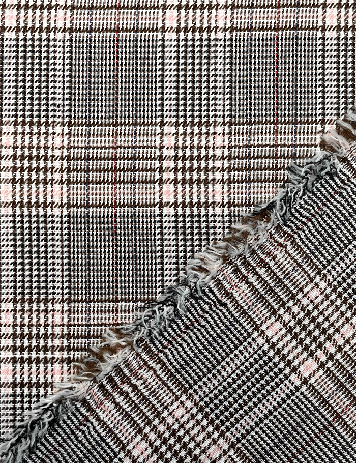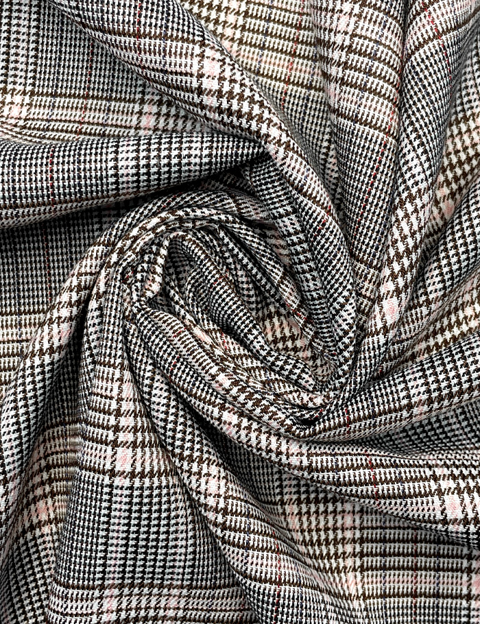 Ткань Костюмная клетка "Жаклин", шоколадно-розовый, диз 22