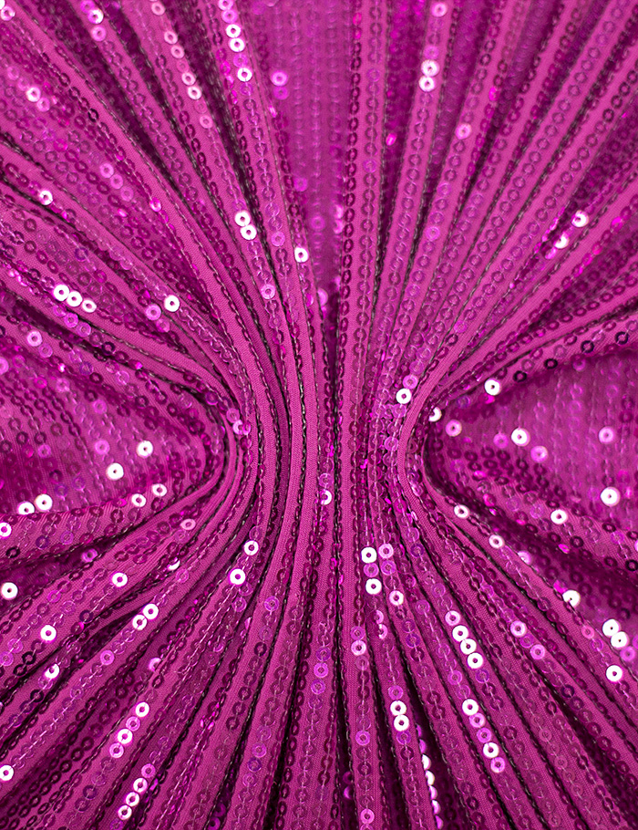 Переливающийся материал, основа которого тонкий трикотаж. Полотно вышито блестящими зеркальными пайетками-кругами, диаметр пайетки 0.3 см. Подходит для декорирования элементов костюма, пошива вечерних нарядов, концертных и танцевальных костюмов.