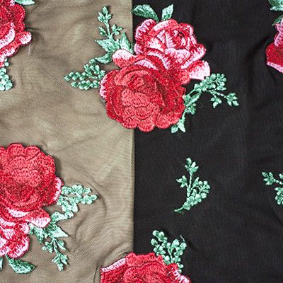 Ткань Кружево-сетка Большие розы на чёрном