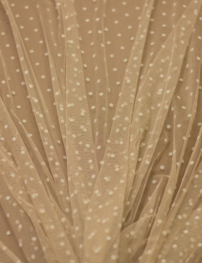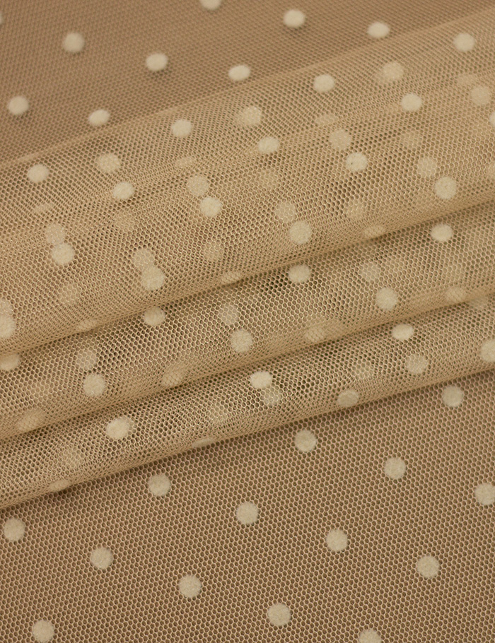 Ткань Сетка флок мелкий горох, бежевый