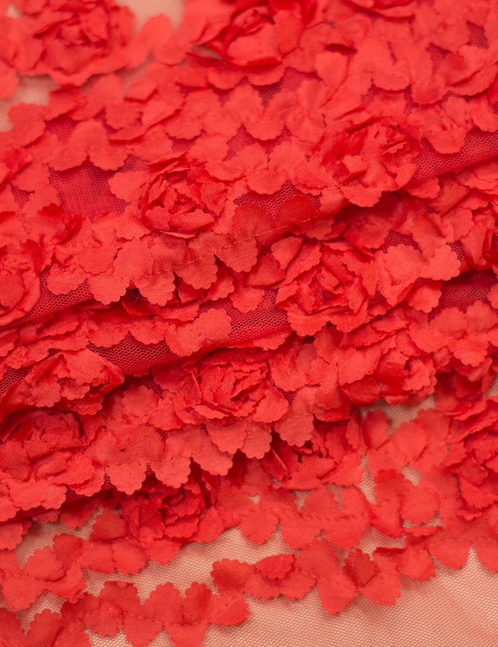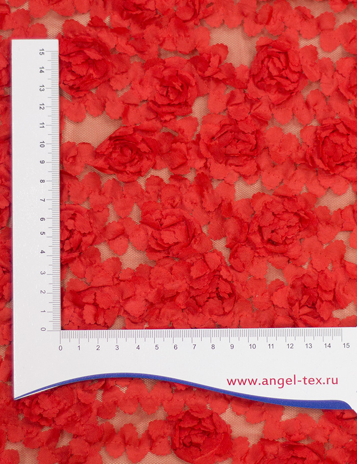 Ткань Сетка объемная 3D Розы, красный
