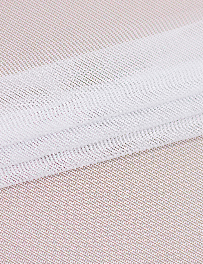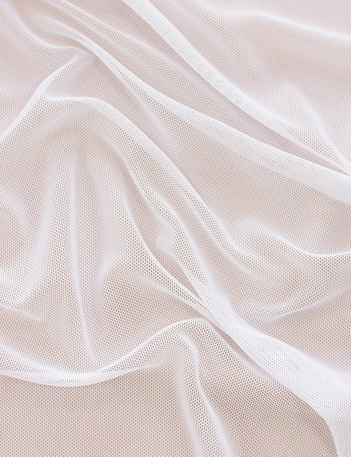 Ткань, состоящее из мелких, нежных ячеек используется для изготовления вставок и некоторых деталей платья, например, невидимой линии горловины. Мягкое полотно великолепно тянется во всех направлениях, приятно для тела.