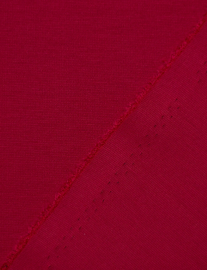 Трикотажное полотно средней плотности с гладкокрашеной отделкой. Лицевая сторона ровная, гладкая, в поперечный рубчик. Изнаночная - мягкая, матовая. Приятная на ощупь ткань. Применяется в пошиве - платья, юбки, жакеты, брючные костюмы и т.д