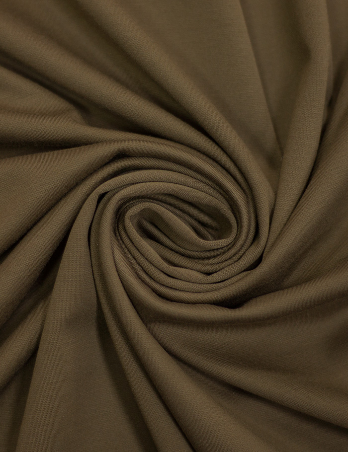 Трикотажное полотно средней плотности с гладкокрашеной отделкой. Лицевая сторона ровная, гладкая, в поперечный рубчик. Изнаночная - мягкая, матовая. Приятная на ощупь ткань. Применяется в пошиве - платья, юбки, жакеты, брючные костюмы и т.д